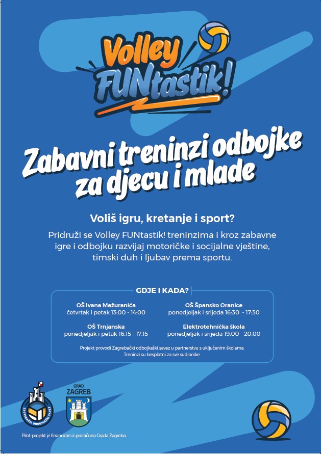Zagrebački odbojkaški savez pokreće pilot projekt „Volley FUNtastik!“, petomjesečni program odbojke za učenike osnovnih i srednjih škola Grada Zagreba, financiran iz proračuna Grada Zagreba. Program je osmišljen kao inkluzivan, edukativan i motivacijski te odgovara na sve izraženiji problem smanjene tjelesne aktivnosti djece i mladih, a sve aktivnosti su besplatne!