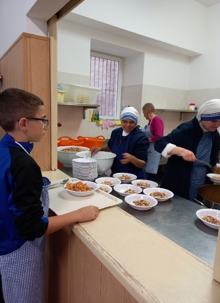 I ove školske godine nastavili smo, u sklopu izvannastavne aktivnosti MALI MISIONARI, s volontiranjem u pučkoj kuhinji sestara Majke Terezije u Jukićevoj. Uz fotografije donosim i osvrt učenika i njihova promišljanja o volontiranju.