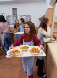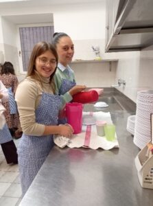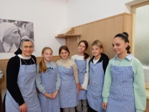 „Bili smo u pučkoj kuhinji s časnom. Ovo mi je bio treći put i bilo je opuštenije, ali svejedno sam bila nervozna. Prvo smo se pomolili i nakon toga smo krenuli posluživati jelo. Kada su se ljudi razišli, sve smo pokupili, prali posuđe i čistili stolove. Nakon toga, otišli smo u kapelicu. Tamo smo vidjeli neke stvari koje su pripadale sv. Majci Tereziji. Pomolili smo se za kraj. Bilo je jako lijepo iskustvo. Osjećala sam se ispunjeno i sretno što sam nekome mogla pomoć.“ (Ana)